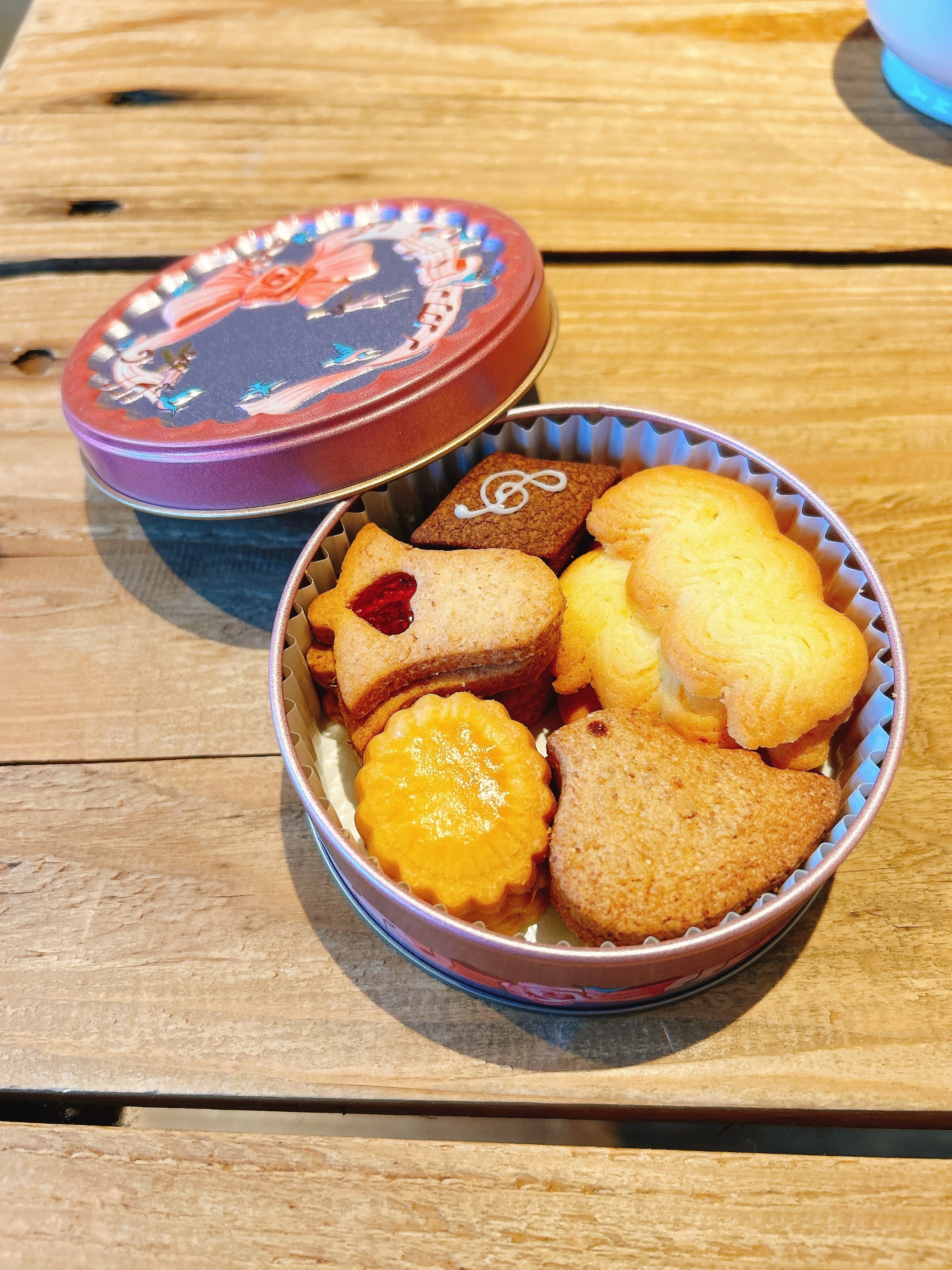 ライ麦サブレ、全粒粉サブレ、バターサブレ、ココアクッキー、ヴィエノワの5種類が楽しめる、贅沢なクッキー缶です。可愛いデザインの缶は、ギフトとしても喜ばれること間違いなしです。